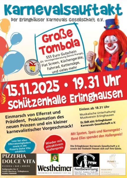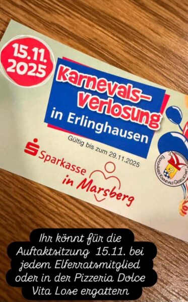 Lose für die Auftaktsitzung am 15.11.2025 können in der Pizzeria Dolce Vita sowie bei allen Elferratsmitgliedern erworben werden.