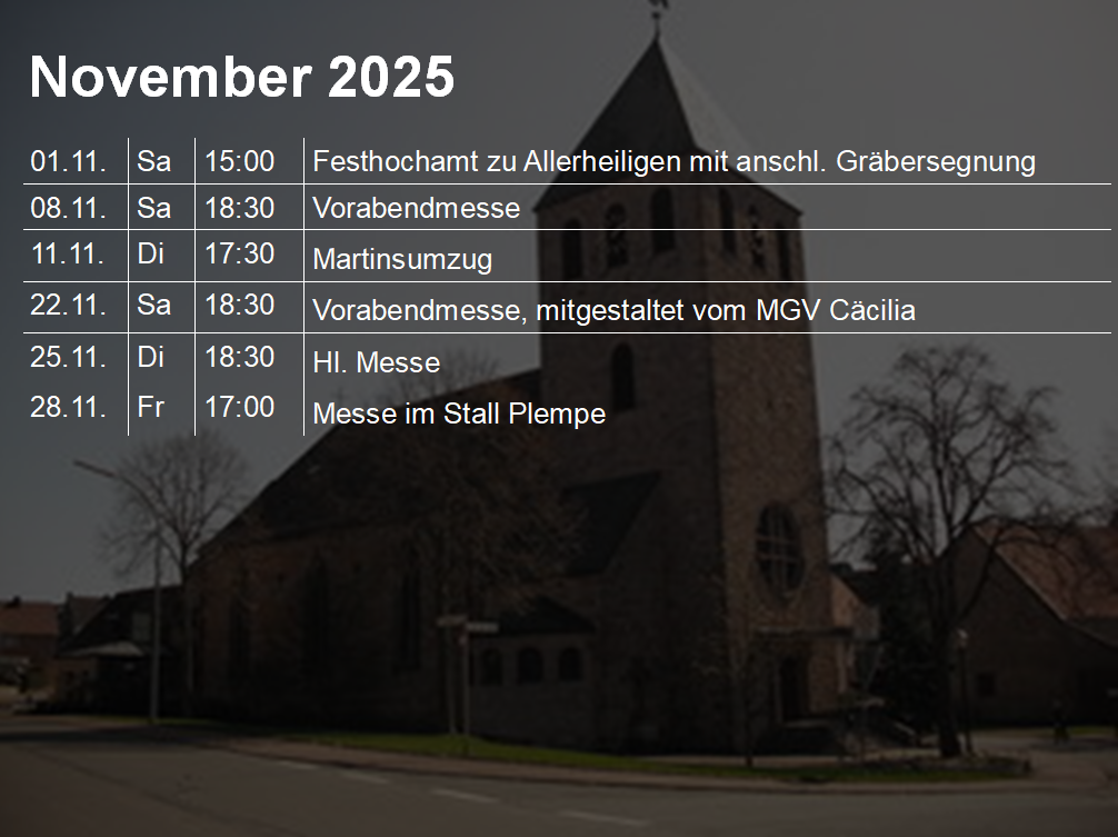 22.11. Sa 18:30 Vorabendmesse, mitgestaltet vom MGV Cäcilia