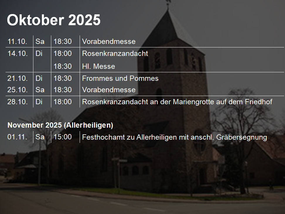 01.11. Sa 15:00 Festhochamt zu Allerheiligen mit anschl. Gräbersegnung